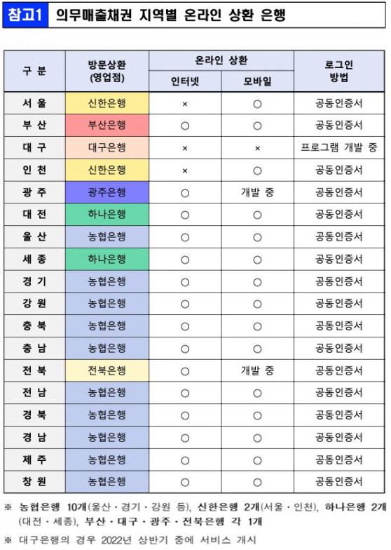 결론을 말씀드리면 지역마다 은행이 정해져 있고 아래와 같습니다.