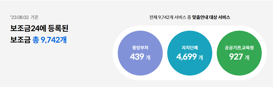 23년 8월 기준으로 보조금 24에 등록된 보조금은 총 9,742개입니다.